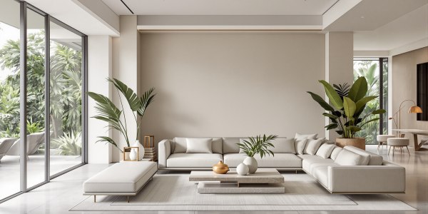 - Simplicité absolue des lignes (meubles sans poignée, plans épurés)